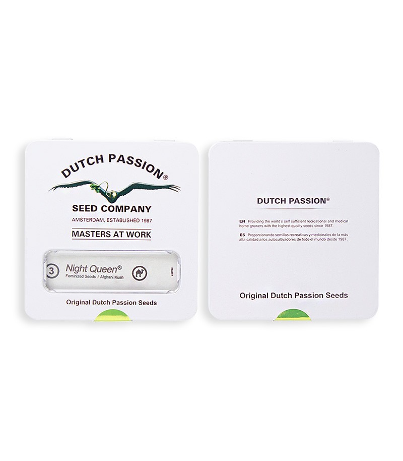 Night Queen («Королева ночи») – сорт каннабиса с преобладающими характеристиками афганской Индики. Это новая версия классического сорта 80-х годов прошлого века. Данный сорт отсутствовал на рынке семян каннабиса более 10 лет, прежде чем штамм вернулся на прилавки кофешопов. Селекционерами Dutch Passion был получен легкорастущий штамм, устойчивый к плесени и вредителям. Данный сорт на 95% состоит из индики и на 5% из сативы, и ни в чем не уступает Mazar. Содержание ТГК, измеренное в независимой лаборатории, составляет 18-20%.