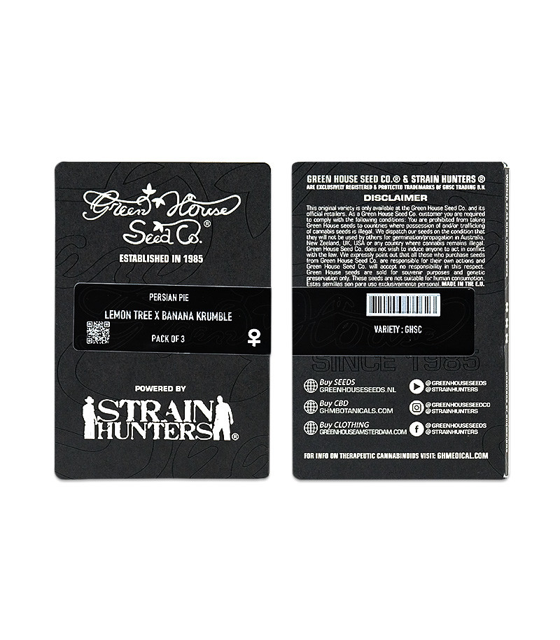 Аромат – первое, с чем знакомит гровера каннабис. Чем он приятней, тем больше у садовода ожиданий. Сорт конопли Persian Pie не только создаёт большие ожидания, но и полностью их оправдывает. Этот гибрид Индики и Сативы (60/40) разработан селекционерами из сидбанка Green House Seeds, которые скрестили американку Lemon Tree и Banana Krumble собственного производства, чтобы получить настоящий шедевр вкуса. Но не вкусом единым! У сорта конопли Persian Pie есть все качества, чтобы подойти и опытным гроверам, и начинающим садоводам.